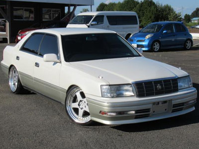 Since 1955, the Toyota Crown has been produced as a mass-market mid- to full-size luxury sedan and hard top for the Japanese marketplace. The base models were often used as taxis, while the more luxurious ones were popular for government. August of 1995 brought the new 150-series Crown sedan with Royal Extra, Royal Saloon, Royal Saloon G, and Royal Touring trim levels. It had many options for engines, including 2.0L (1G-FE), 2.5L (1JZ-GE), 3.0L (2JZ-GE) and 4.0L (1UZ-FE) varieties. One of the new options in the Majesta was vehicle stability control, a first for Toyota.